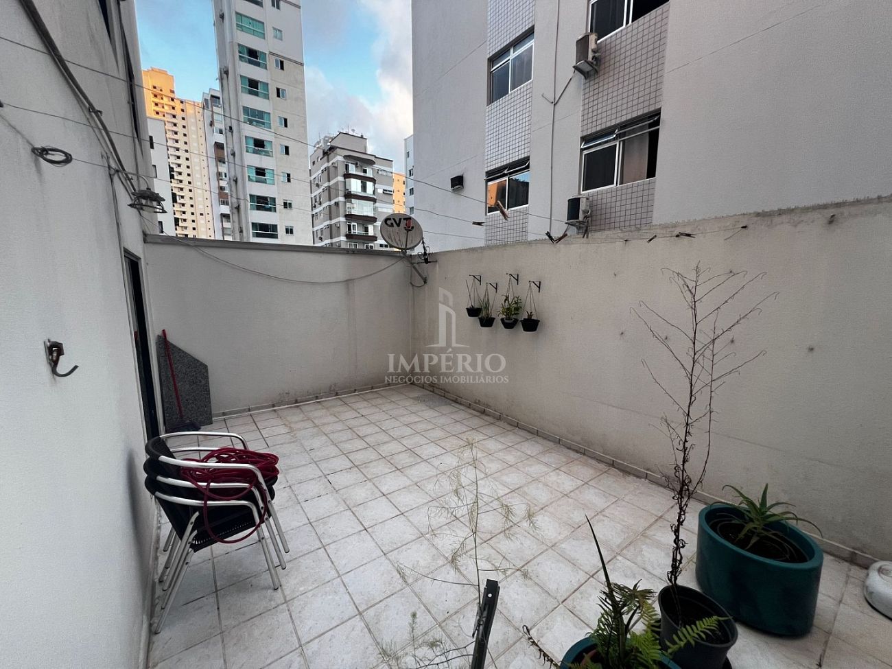 Terraço privativo com estendal