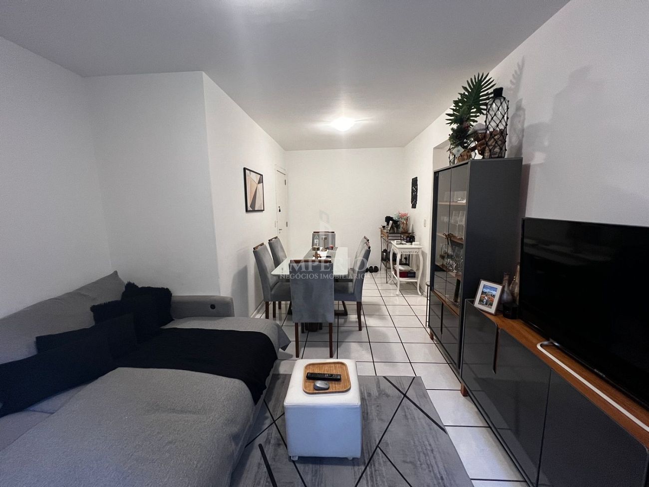 Sala de estar e jantar integradas com atmosfera acolhedora